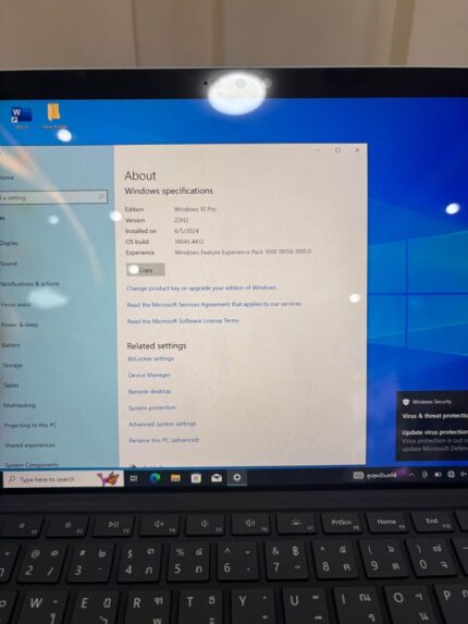 Microsoft Surface Pro 7 / Pro 7+ (Used) หน้าจอทัชสกรีน 2 in 1 เป็นทั้ง Laptop และ Tablet มีอุปกรณ์ครบ ราคาพิเศษ !! Microsoft Surface Pro 7 + (ใส่ซิมได้) ข้อมูลจำเพาะทางเทคนิค Processor : Intel Core i5-1135G7 @2.40GHZ 2.42GHz Ram : 16.0 GB Screen : 12.3" 2736 x 1824 (267 PPI) กราฟิก : Intel® Iris Xe Graphics ที่เก็บข้อมูล : SSD 256 GB ขนาด : 11.5 นิ้ว x 7.9 นิ้ว x 0.33 นิ้ว น้ำหนัก (ไม่รวมแป้นคีย์บอร์ด) : 770 กรัม
